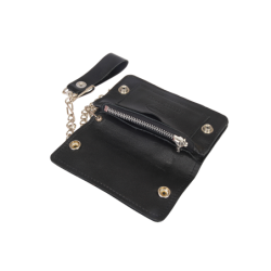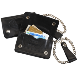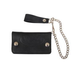 Here's our two-wheeled take on the classic eighteen-wheeler double-snap chain wallet. Road warriors, metro travelers and happy wanderers alike will appreciate the quality and reliability. The craftsmanship is unmistakable... the attention to detail obvious. The quality of the leather and the heft of the chain are impressive.