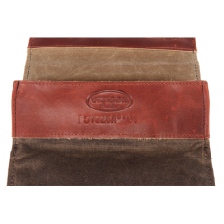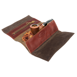 The side gussets of the upper pouch are cut from goatskin, to make a wide pouch opening for filing a pipe with a slim fitting and low bulk construction.