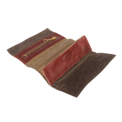 At the other end of the pouch is a brass zipper closing off a secure small tool storage pocket. Ideal for pipe cleaners, matches, scrapers or cutters. Or your spare house key...
