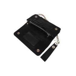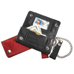 Here's our two-wheeled take on the classic eighteen-wheeler double-snap chain wallet. Road warriors, metro travelers and happy wanderers alike will appreciate the quality and reliability. The craftsmanship is unmistakable...the attention to detail obvious. The quality of the leather and the heft of the chain are impressive.