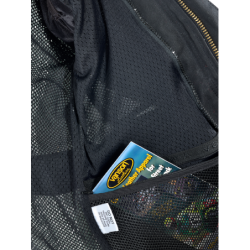 LINING POUCH FOR INSERTED SOFT WAFFLE BACKPAD--- ---- BackPad is in a pouch sewn in the lining and is closable. ---- WAFFLE is a honeycomb material. This is NOT CE rated. ---- NOTE: Backpad is fully ventilated and cut as a narrow strip so as to allow full air-flow. Pouch will not accept other Backpad shapes.