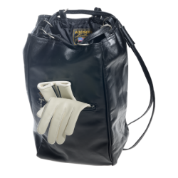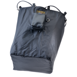Draw Bag design tapers towards the top. One zip closed inside pocket - and