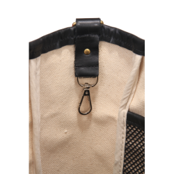 At each bag-end a D-ring tab is sewn and riveted with a solid brass D-ring for an optional over-the-shoulder carrying strap. Swivel-clips are attached to the inside end of each D-ring tab – no more "fishing for keys" with this design. There are 3 different styles of optional shoulder straps available, and each strap style is available in two lengths.