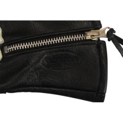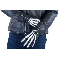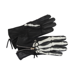 In 1985 - a Bad Year as you already know - we introduced our Rocket Gloves. In 1990 - arguably an Even Worse Year, with the Royal New Zealand Navy finally abolishing the daily rum ration and Tim Berners-Lee putting up the first web-server - we added the anatomical bones motif to the Rocket Gloves to complement our Vanson Bone Suits and Jackets. We decided to call them X-RAY Gloves. You might not want to use them in a surgical procedure, but they are still pretty darn realistic.Leaving aside for a moment the Bone motif, Vanson X-RAY Gloves are elegantly old-school, with a long, integrated, zippered cuff and a one-piece hand, meaning the top continues into the palm of the hand along the index-finger side, in one piece of leather. An extravagant construction - demanding large pieces of carefully prepared and matched leather for a perfect pair of gloves - but with the advantages of a greatly superior smooth round forefinger fit and a slim, fitted wrist.