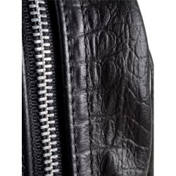 • Riveted leather pull-tabs on zipper