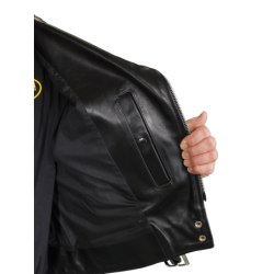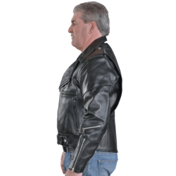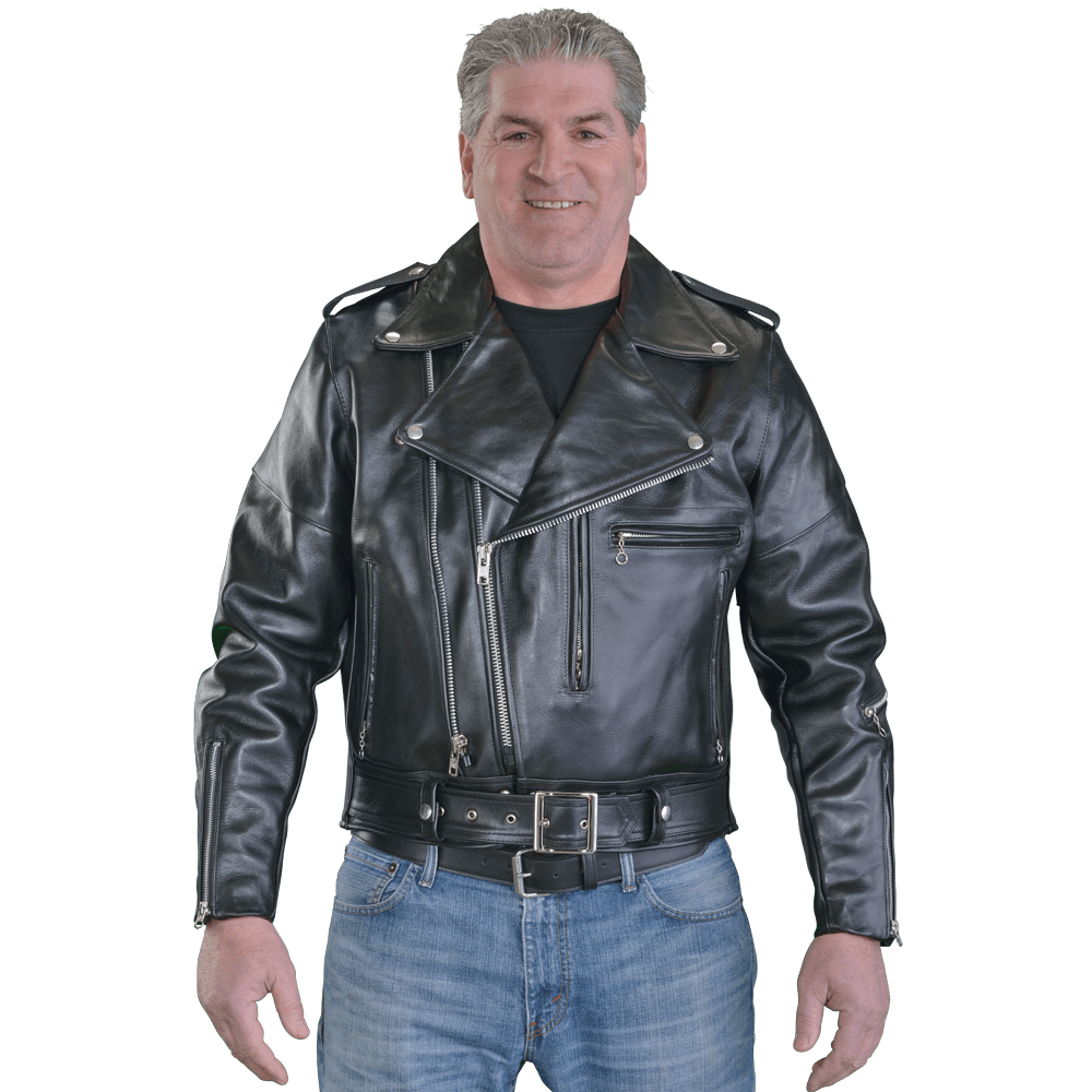 The vintage version featured twin-track zippers and sewn-in half belts for a snug, wind-tight fit, and relied on authentic '60s technology - heavy sweaters and "dead air space" for insulation, with an adjustable tight fit to "keep things in place" while the bikes rattled and shook. Vanson enhancements to our version include a large, stiffened lower-back kidney panel and full-length action back to make this jacket optimally functional. Timeless period features such as the leather-lined ignition key pocket on the left sleeve and a leather lined concealed carry gun pocket built in to the inside facing, this pocket can be ordered for either right or left hand draw. All this makes the Vanson Rock & Roll leather jacket a classic favorite of riders and rockers alike. A rugged look with durable details and hand-built craftsmanship that can only be a Vanson. American made to last a lifetime - and beyond (R.I.P., Joey).