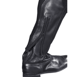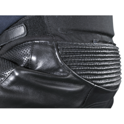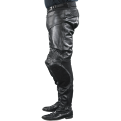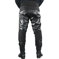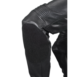 Made from ProPerf competition-weight cowhide with pre-installed hip and knee VanTech CE armor   (Floating Armor System US Patent 6070274), the goal is security and comfort while riding in a tucked-in position on a European-style tourer or sportbike. The racing-suit heritage is unmistakable, with the Kevlar® cloth inlays beginning at the crotch and extending along the inner thigh towards the knee. Even the fly zipper has been set in to the front of the pants to avoid any extra overflaps and bulk. The seat is reinforced with a 1000 denier Cordura layer on the inside for added protection with less bulk and more comfort. Doubled leather is used at the knees with both the underleg and top-of-knee areas sculpted for comfort in the riding position on the bike. The athletic mesh lining is easily removable to facilitate washing, changing or maintenance work on the pants. Velcro fields for knee pucks are standard equipment, and will accommodate the UHMW (Ultra-High-Molecular-Weight) pucks for excellent road feel without grabbing. The waistband is fully adjustable with a built-in padded kidney support area at the rear. Lower down the legs, the fit is tapered with Kevlar® insets from behind the knee, along the calf, and down to the ankle for a snug inside-the-boot fit. Ankle zippers are at the rear calf area for comfort and convenience.