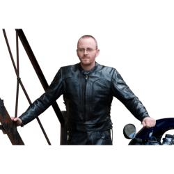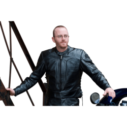 Result: a serious jacket for serious riders. Think The Terminator. Understated yet extremely substantial and functional... from its protective competition-weight cowhide to its anodized black metal zippers and snaps. Technically hardcore in every sense.