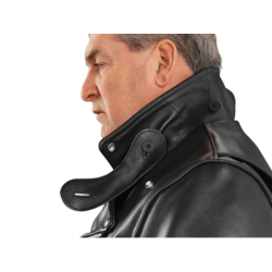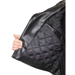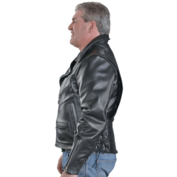 We had the Vanson Highwayman, but we wanted something a little cleaner, less traditional but still a Hard Core Biker / Cafe Racer Jacket - this unique quilt lined jacket with a concealed carry (CCW) leather lined gun pocket was sketched out in South Boston after a cold and wet ride home. We knew we wanted to be able to fully close out the wind so we added a throat latch to the under-collar. Flip up the collar and button the throat latch to keep the cold out... or snap the collar and throat latch down to enjoy the wind. Then we added the reinforced kidney protection and lace-up side panels for comfort during long rides. We kept the deep and secure inside wallet pocket, and the leather-lined gun pocket. 100% Hard Core through and through.